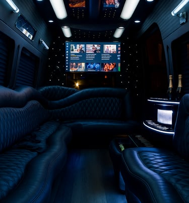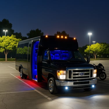 Ride in style with our black luxury party bus, featuring plush seating, LED lighting, and a spacious interior perfect for any celebration. More than transportation, it’s part of the experience.